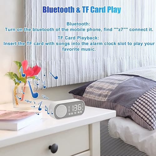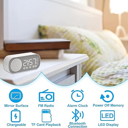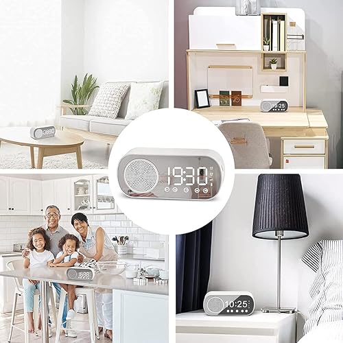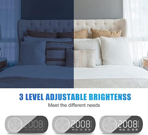 PAMENET Orologio sveglia digitale LED con radio FM e altoparlante Bluetooth, modalità di attenuazione della luminosità a 3 livelli, ripetizione orologi per decorazione