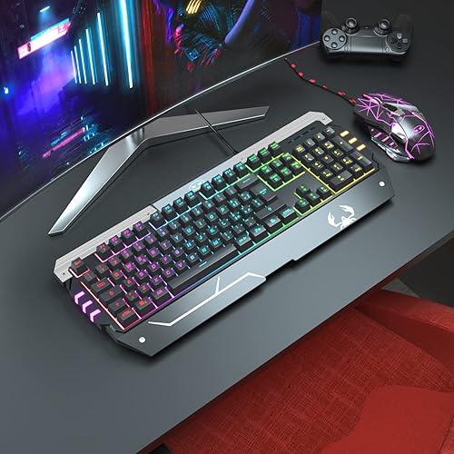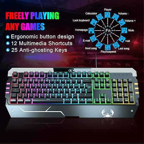 Anivia [IT Layout] Set di mouse e tastiera da gioco RGB 7-Color LED retroilluminazione tastiera USB per Mac Laptop