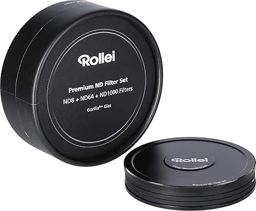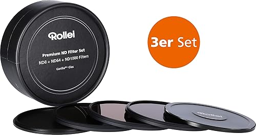 Set di filtri Rollei Premium Lens Grey composto da: 1x ND 8, ND 64 e ND 1000 filtri in vetro gorilla con anello in alluminio per lunghe esposizioni con coperchio di protezione in alluminio
