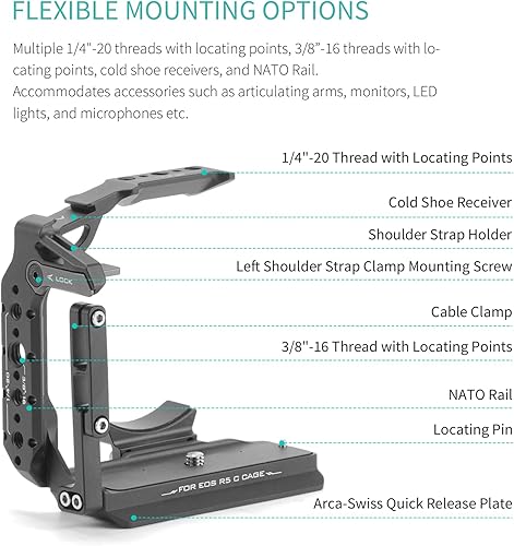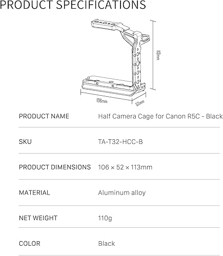 Tilta Gabbia R5C, mezza gabbia per fotocamera compatibile con Canon R5C con attacco a morsetto HDMI e supporto adattatore EF - Nero TA-T32-HCC-B