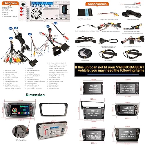 Erisin 8-Core Android 14 4GB RAM+64GB ROM Autoradio GPS Navigatore per SEAT IBIZA 2009-2013 7 pollici Schermo tattile Supporti Bluetooth 5.0 Senza fili CarPlay Android Auto WiFi DSP RDS CANbus