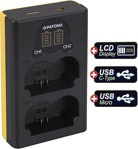 PATONA LCD Caricatore Doppio USB-C (5V / 2,1A) con 2x np-w235 Platinum Batteria Compatibile con Fuji Fujifilm xh2 x-h2 x-h2s gfx 100 x-s20 xs20 x-t4 xt4 x-t5 xt5 xt 5 gfx-100 gfx100
