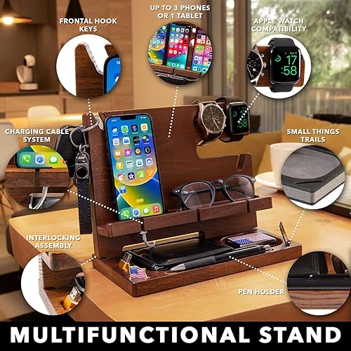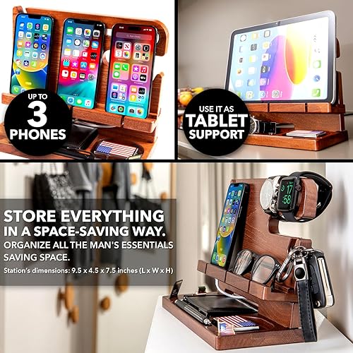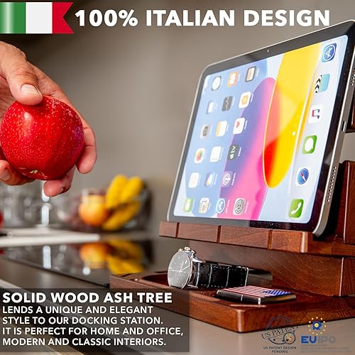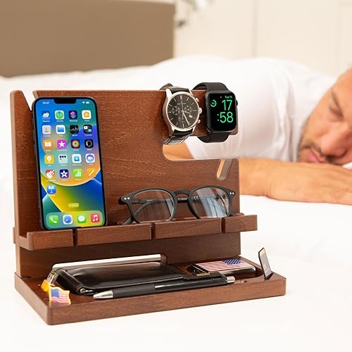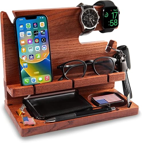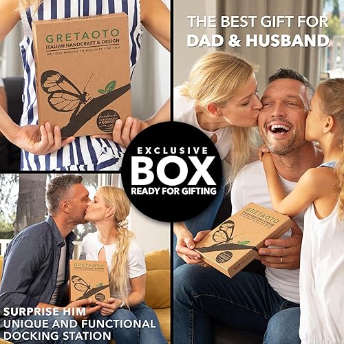 Greta Oto Docking Station Legno per Cellulare Supporto Telefono Compatibilità Universale Smartphone Svuotatasche Regali per Lui Uomo Papà Marito Natale San Valentino Anniversario (Ciliegio)