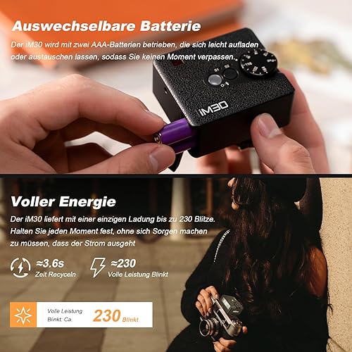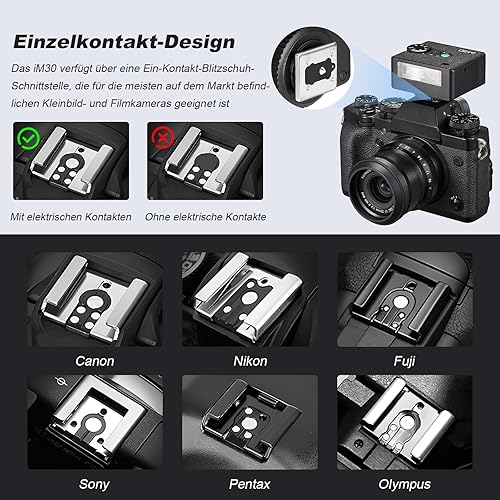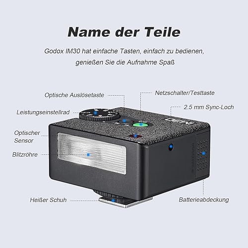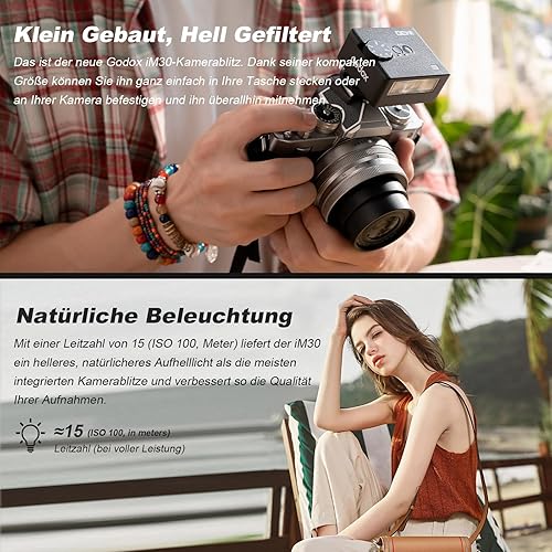Godox iM30 Flash Godox per Fotocamera, 7 Livelli di Potenza Mini Flash Speedlite 6500K±200K per Canon Sony Nikon Fuji Olympus