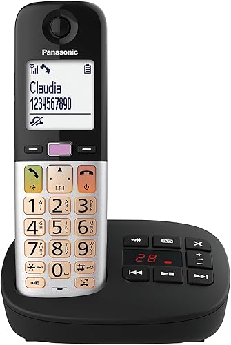 Panasonic KX-TGU432EXB Telefono senza fili digitale con segreteria telefonica, volume amplificato, unità base e 2 auricolari, display LCD, torcia elettrica, compatibile con apparecchi acustici, nero e