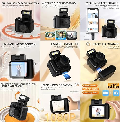 ACTIVPRO Mini Shot V340 | Mini fotocamera digitale | Schermo LCD | Scheda SD da 128 GB | HD 1080P | Custodia | Videoregistratore tascabile | Ricaricabile | Portachiavi per fotocamera | Videocamera