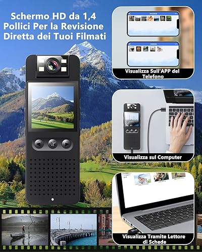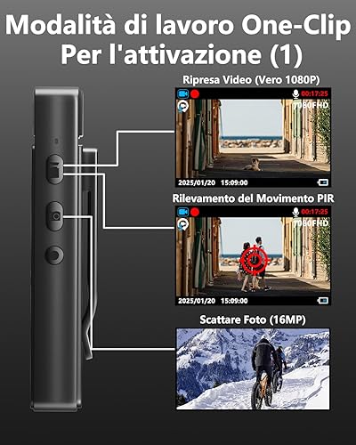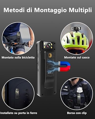 Bextgoo Body Cam, Mini Telecamera con TF Card da 64GB, Visione Notturna a Colori, 16MP Foto, Batteria 6-8 Ore, Clip Magnetica &Supporto Bici, Action Cam per Casco/Moto/Ciclismo/Sport/Polizia