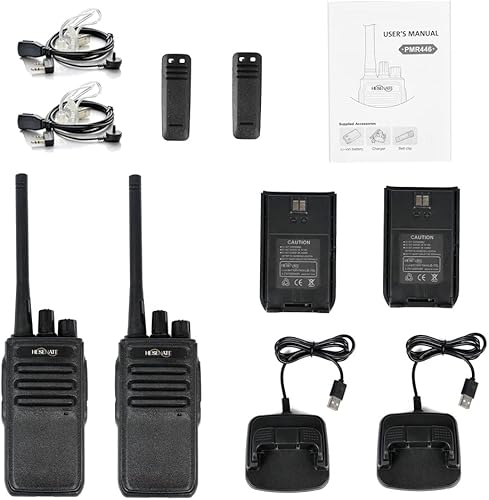 Walkie Talkie PMR446 Radio bidirezionale senza licenza, HT999 16 canali ricaricabili a lungo raggio Walkie Talkie con auricolare a tubo acustico e un cavo di programmazione (4 PACK)