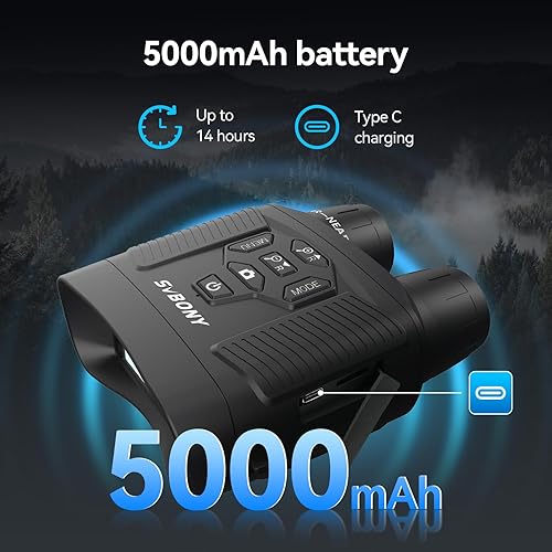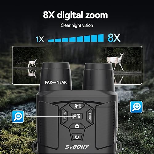 Svbony SA206 4K Binocolo Visione Notturna, 8X Zoom Digitale Goggles di Visione Notturna, 5000mAh Batteria Ampio Schermo 3'' Binoculare Visione Notturna, 32GB Scheda Osservare Fauna Selvatica Cacciare