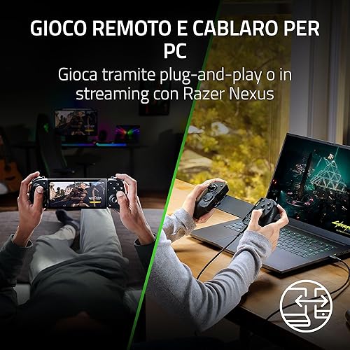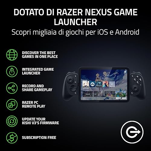 Razer Kishi V3 Pro - Controller a gaming USB-C iPhone, smartphone Android e mini tablet fino a 8' - Plug and Play - TMR Stick analogici (12 pulsanti - Sensa HD haptics, app Nexus) Nero