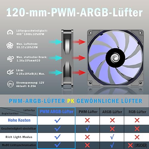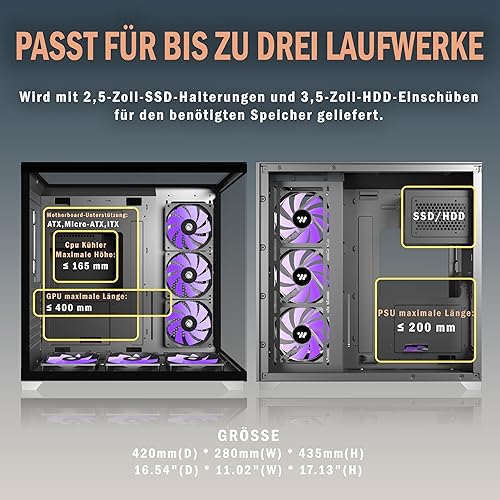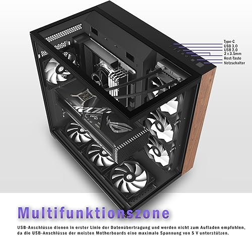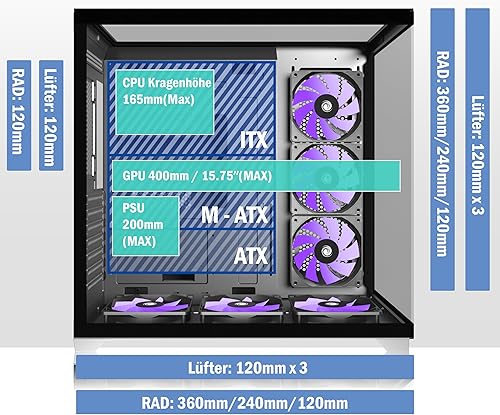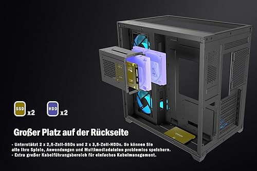 ANSAITE Case PC - preinstallati 6 ventole ARGB, ATX Mid Tower Gaming Case, con doppio vetro temperato a tutta altezza per computer