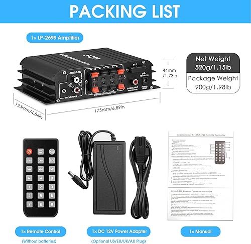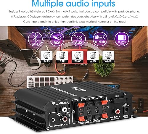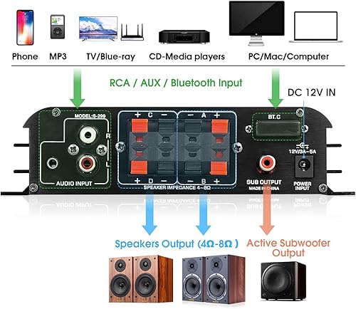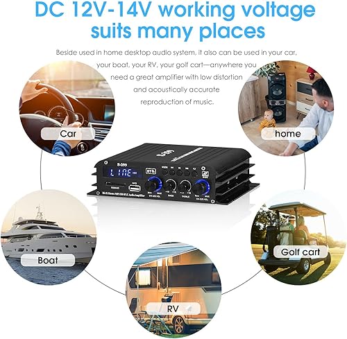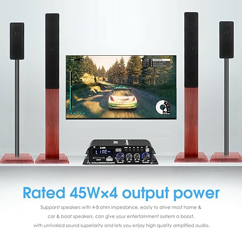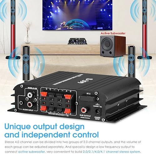 HiFi 4.0 Channel Bluetooth Digital Power Amplifier for Home/Car Bass Audio Amp
