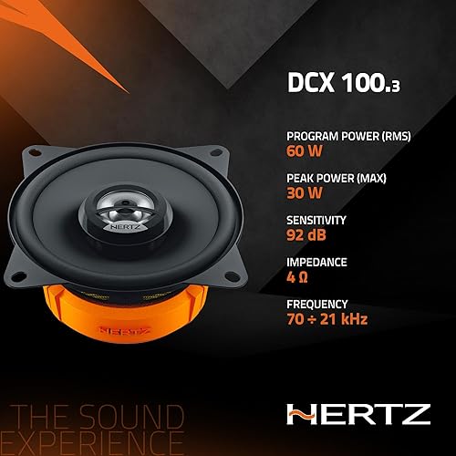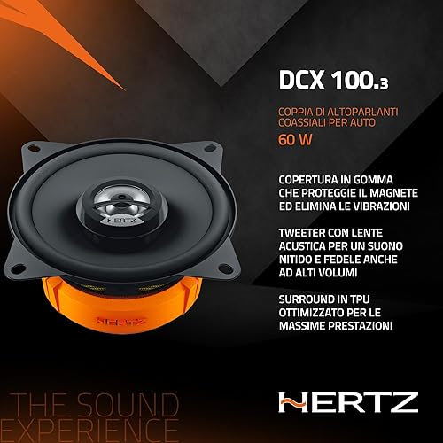 Hertz DCX 100.3 - Coppia di altoparlanti coassiali da 100 mm con tweeter a cupola e woofer in polipropilene con magnete al neodimio - 60W max