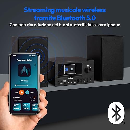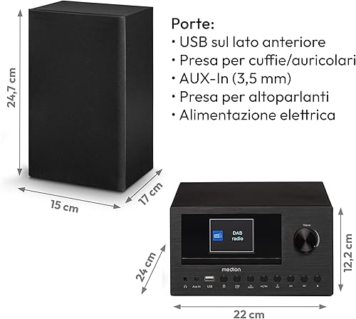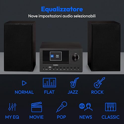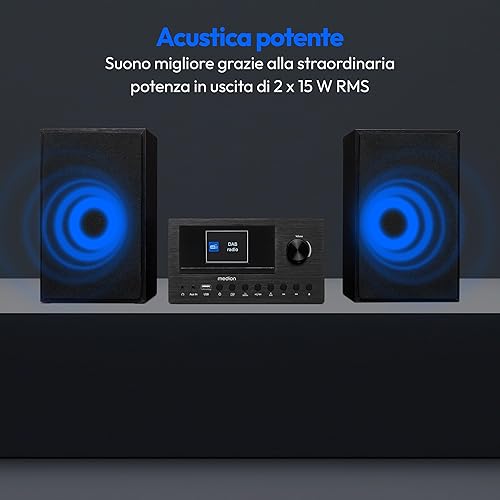 MEDION P85003 Micro Audio System sistema compatto (radio Internet, DAB+, radio PLL FM, Bluetooth, connessione USB, AUX, 2x150 W), nero