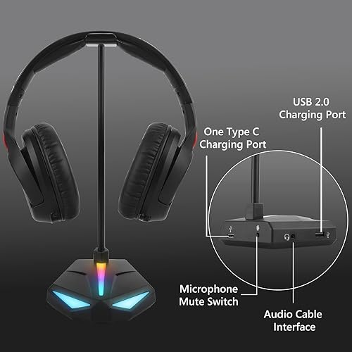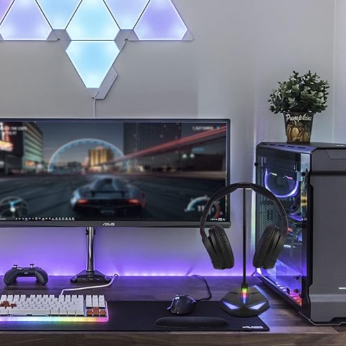 Geekria Supporto per cuffie RGB con audio surround AUX 7.1 da 3,5 mm e 3 porte USB Dual PC Gaming Headset Stand con porta di ricarica USB2.0 compatibile per Accessori da gioco