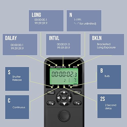 Scatto remoto wireless per Nikon, selettore radio con timer, intervalometro, esposizione prolungata, scatti in sequenza e numero di colpi, cavo autoscatto telecomando senza fili per fotocamera