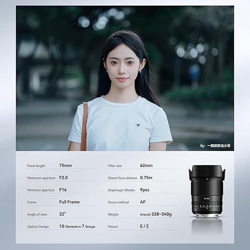 TTARTISAN Obiettivo 75mm F2.0 per Montaggio Sony E Obiettivo Telaio completo Messa a fuoco automatica Ritratto