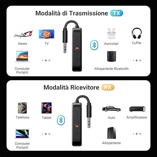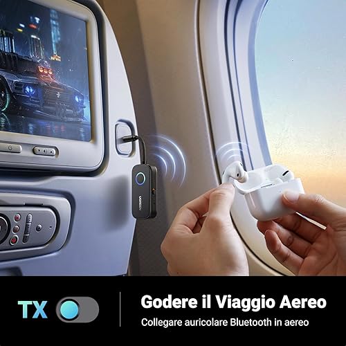 UGREEN Adattatore Bluetooth 5.2 Trasmettitore e Ricevitore 2 in 1 Audio con Microfono Integrato Jack per Auto Altoparlanti TV Cuffie