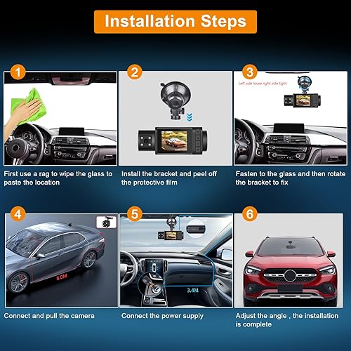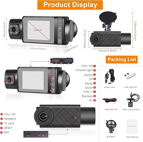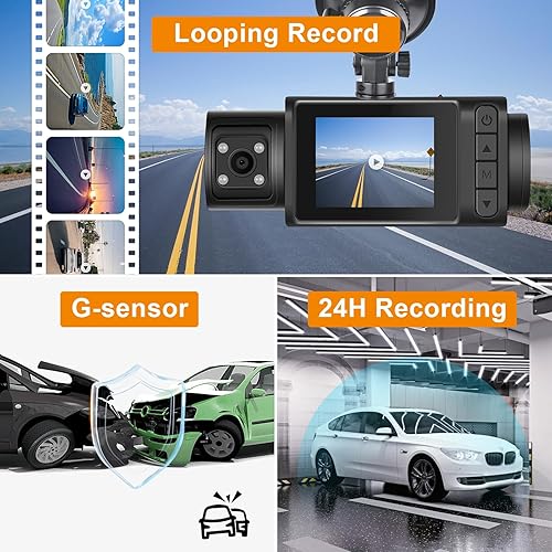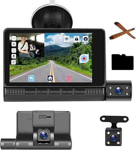 Hodozzy Dash Cam Anteriore e Posteriore Interna, 1296P 3 Canali Dashcam Auto Telecamera da Cruscotto WDR Visione Notturna, Registrazione Loop, G-Sensor 24H Monitor di Parcheggio Videocamera Scheda SD