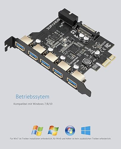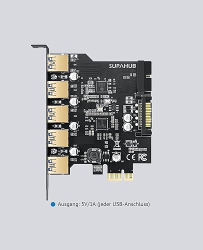 SupaHub Scheda PCI-E a USB 3.0, 5 Porte, USB 3.1 Gen1, PCI Express, Larghezza di Banda Fino a 5 Gbps, Espansione 2 Porte, Pannello Frontale