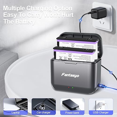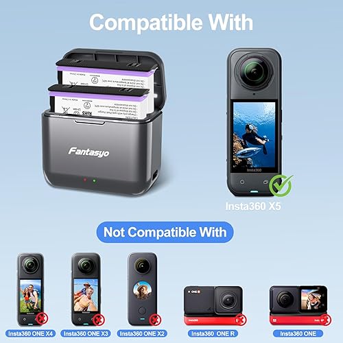 Fantasyo Batteria 2 confezioni da 2800 mAh per X5, supporto ricarica rapida per X5 fotocamera caricabatterie accessori