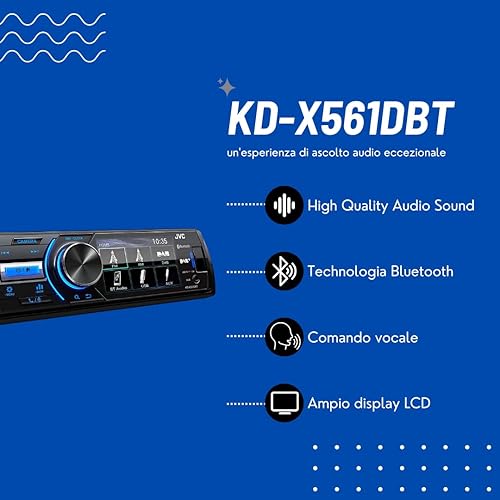 JVC KD-X561DBT Digital Media Receiver con monitor da 3', tuner DAB+ integrato e interfaccia Bluetooth, compatibilità iPod/iPhone, Front USB, AUX Input (Front/Mini jack), Nero