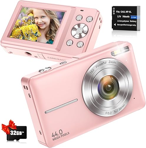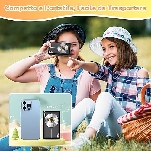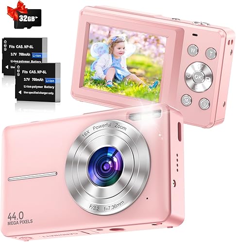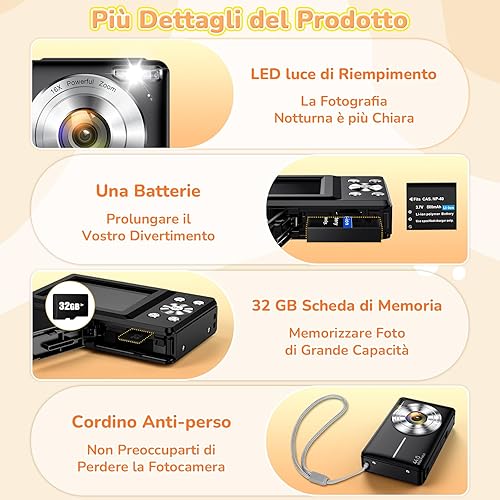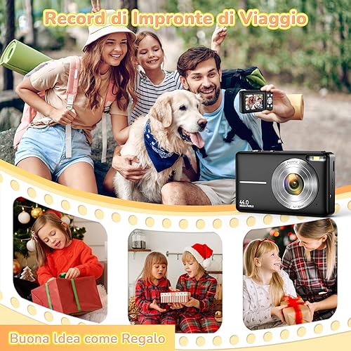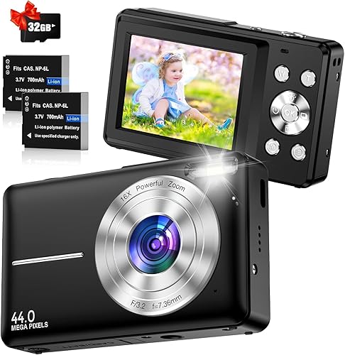 Macchina Fotografica Digitale Fotocamera Digitale Compatte 1080P 44MP, Fotocamera Compatta Con Zoom 16X, Scheda 32GB, 2 Batterie Macchina Fotografica Compatta Per Principianti Ragazzi Bambini, Nero