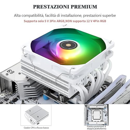 TR SI-100 WHITE ARGB CPU, tubi di calore 6 × 6 mm, raffreddamento del processore a ventola silenziosa PWM 120 mm con cuscinetto S-FDB V2.0, tecnologia AGHP 3.0, per AMD AM4 AM5/Intel