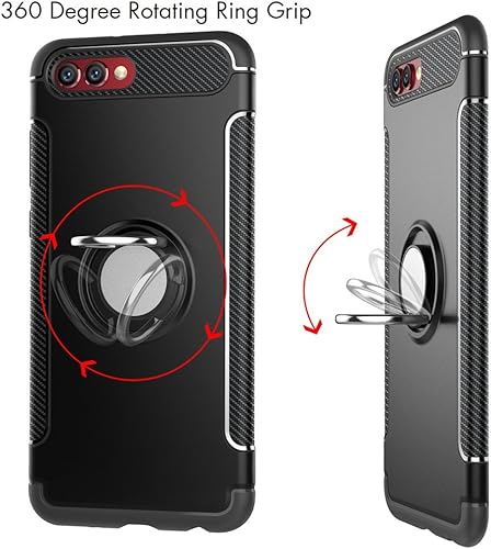 BLUGUL Cover Honor View 10, Supporto per Anelli Girevole a 360 Gradi, Compatibile con Supporto Auto Magnetico, Custodie Case per Huawei Honor View 10 Nero