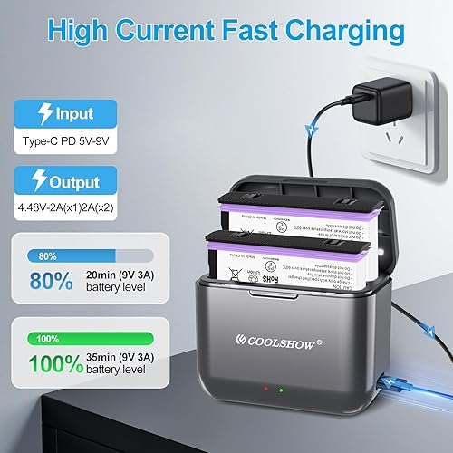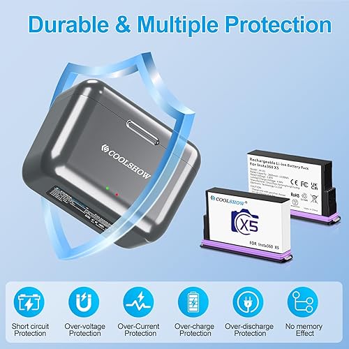 CoolSHOW 360 X5 - Batteria da 2800 mAh, 2 pezzi con custodia per batteria e caricatore rapido X5, design compatibile con fotocamera Insta360 X5 (2 batterie + 1 caricabatterie)