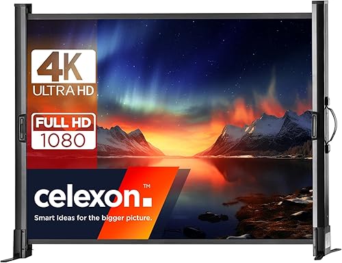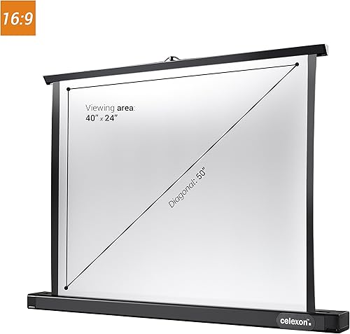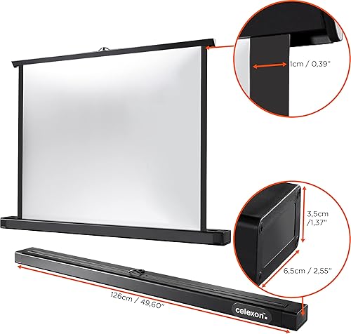 celexon Tela portatile per presentazione e proiettore home theater, con ritiro automatico, professionale, 111 x 62 cm, 16:9-50'