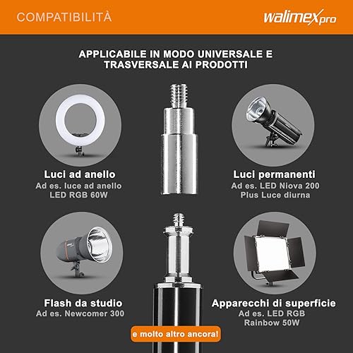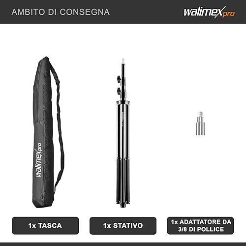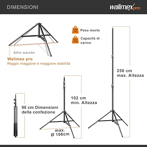 Walimex pro WT-806 Soporte de luz (con amortiguación de muelle, aluminio, máximo 256 cm, carga de 6 kg, Soporte para reflector, flash, softbox de estudio) con bolsa