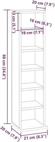 Mobile Porta CD Grigio Cemento 21x20x88 cm in Legno Multistrato (7,72KG)