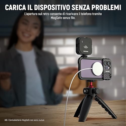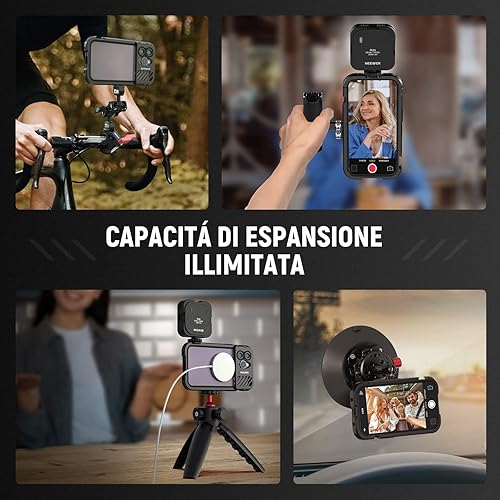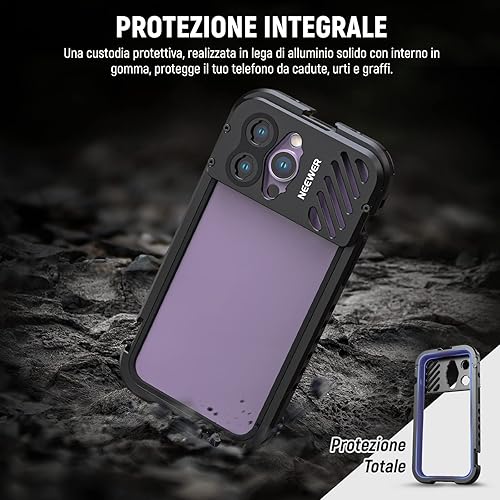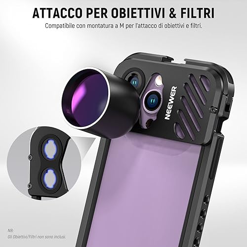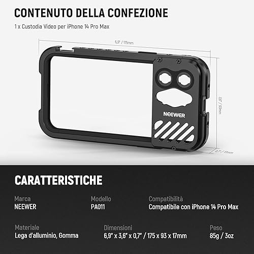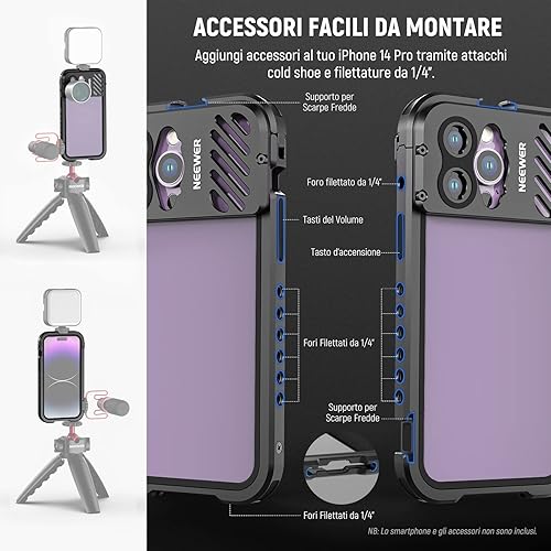NEEWER Gabbia Cellulare per iPhone 14 Pro Max, Stabilizzatore per Telefono Smartphone Rig Video in Lega di Alluminio con 2 Scarpette Fredde e Filettature 10x1/4', PA006