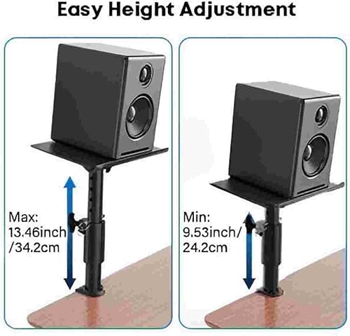 Supporto da tavolo universale per altoparlante da tavolo, Supporto per altoparlanti con morsetto da scrivania,Altezza e angolo di inclinazione regolabili, con carico fino a 30 kg/pc, Black