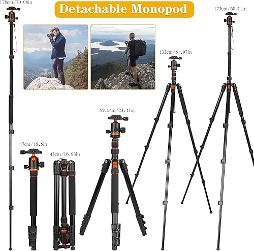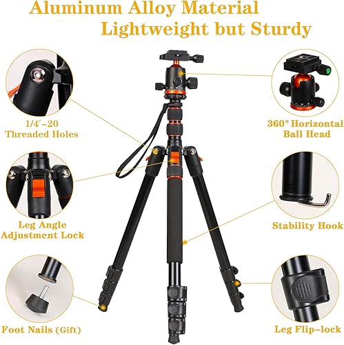 LINKCOOL - Treppiede per fotocamera, 177,8 cm, in alluminio, leggero, con testa a sfera e piastra a sgancio rapido, altezza regolabile, treppiede da viaggio per DSLR, fotocamera, telefono, capacità di