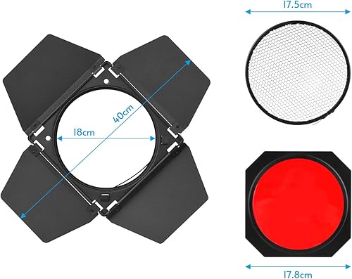 Godox BD-04 Kit Barndoor per porta da fienile con griglia a nido d'ape 4 filtri in gel colorato per GODOX SL60W SL150II SK400II Studio Light Portrait Still Life Photography