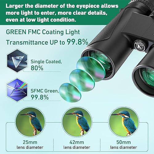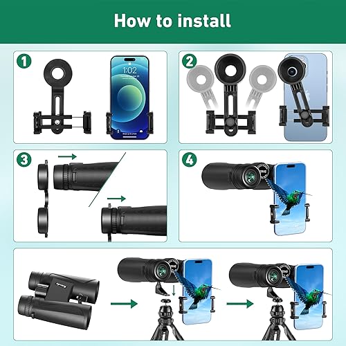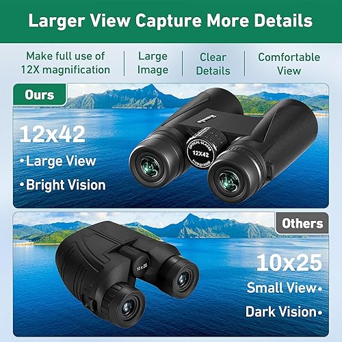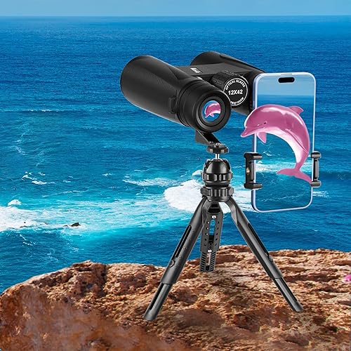 Binocolo per adulti, Kussla 12 x 42 HD, binocolo ad alta potenza, con treppiede, adattatore per telefono, visione notturna chiara con luce bassa, binocolo impermeabile per Stargazing Bird Binoculars
