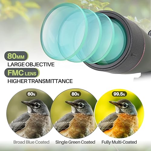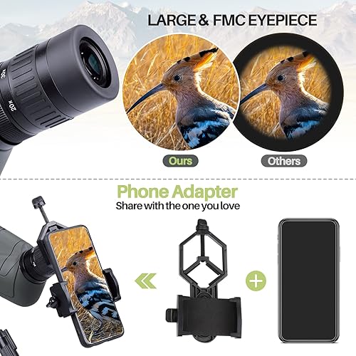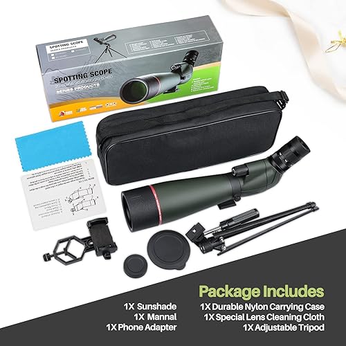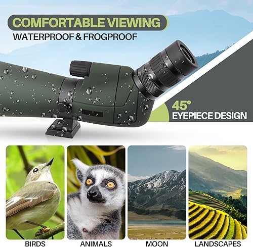Cannocchiale Professionale Potente 20-60x80 con treppiede, borsa per il trasporto e adattatore per smartphone - Telescopio angolato BAK4 - Il più nuovo telescopio impermeabile per tiro al bersaglio