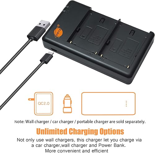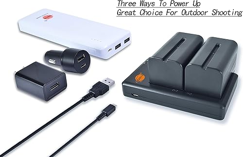 NP-F750 F770 (2 pezzi) Batteria di ricaricabile e doppio caricatore compatibile con fotocamere NP-F550, F730, F970, CCD-RV100 CCD-RV200 CCD-SC5 CCD-SC55E, videocamera, npf caricabatterie