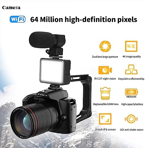 Fotocamera Digitale da 64 MP, Zoom Ottico 16X Obiettivo Grandangolare da 62 Mm Stabilizzazione Ottica Dell'immagine, Video Full HD 4K Display a Colori IPS da 3 Fotocamera per