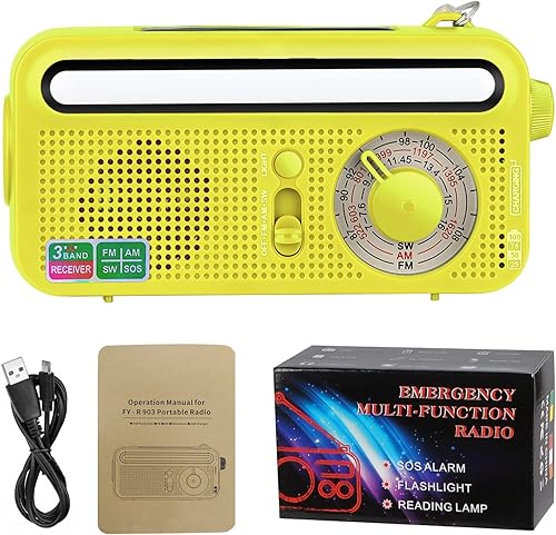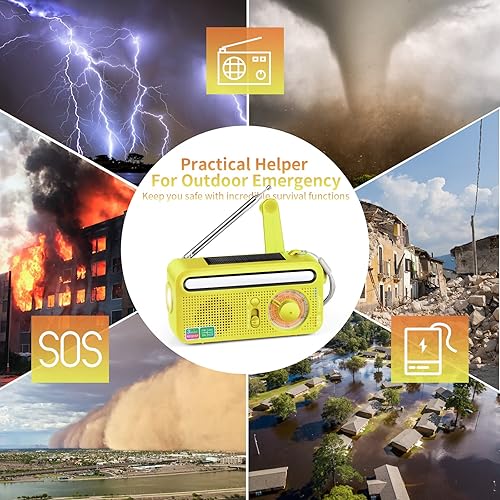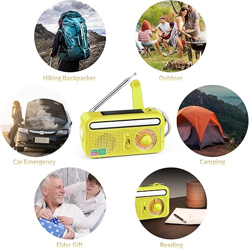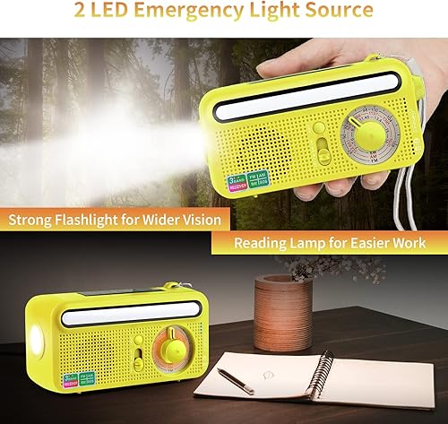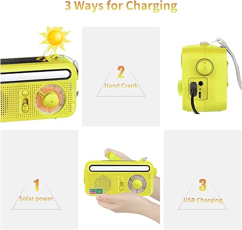 Olycism Radio Solar Dynamo Batteria 2000mAh Radio a Manovella solare di Emergenza e Power Bank USB Radio Portatile Torcia a LED e Luce Lettura Allarme SOS Impermeabile per Escursioni Campeggio Giallo