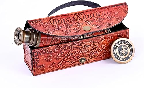 Brass Nautical Telescopio Antico Replica Pirata Royal Navy Telescopio Replica In Custodia In Pelle E Con Tubi Incisi - Dollond London