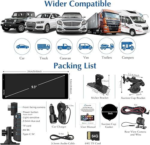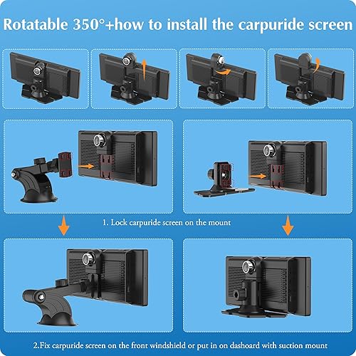 2025 CARPURIDE W903 Console Multimediale Portatile Carplay e Android Auto Smart con Videocamera Anteriore e di Backup da 4K, Registrazione in Loop, Audio Bluetooth, Mirror Link, GPS, Siri