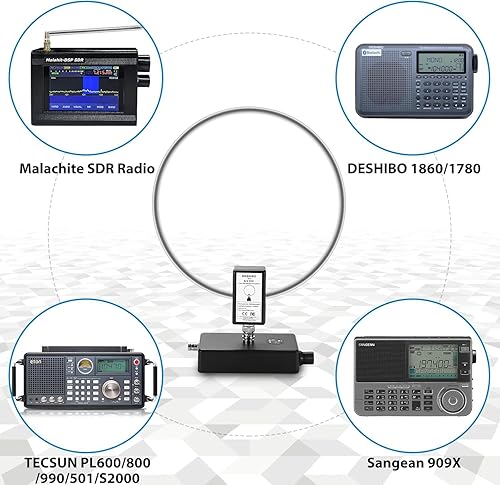 AURSINC GA450 Loop Antenna, Active Shortwave Radio Antenna Portatile con BNC Cable SW 2.3-30MHz MW 522-1710KHz per radio Ham