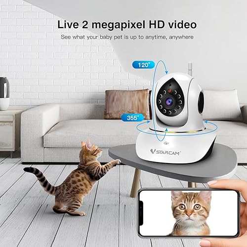 VSTARCAM 720P telecamera per gatti, telecamera interattiva per cani e gatti con app per cellulare, visione notturna a infrarossi, rilevamento del movimento, audio bidirezionale, telecamera per cani da