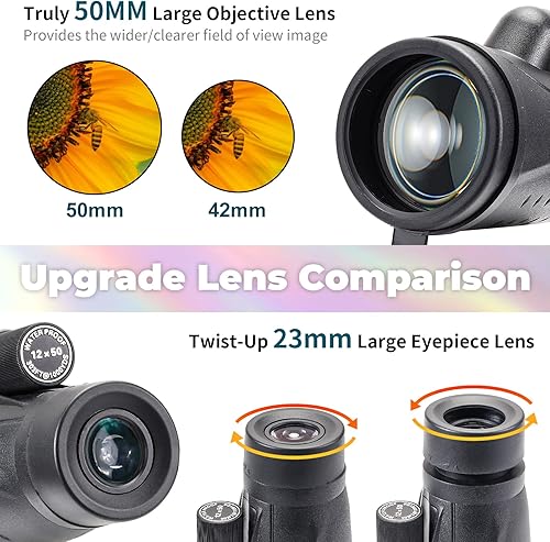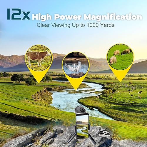 Telescopio monoculare 12x50 per adulti e bambini ad alta potenza, compatto, tascabile, portatile, con smartphone, per caccia, bird watching, escursionismo, concerto, viaggi