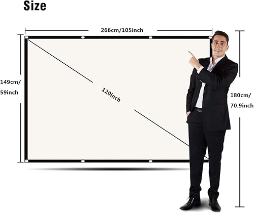Schermo del Proiettore da 120 Pollici, Schermo del Proiettore Portatile con Schermo Hd 16: 9 4K Per Ufficio del Cinema Home Theater Scuola, Schermo Proiettore Pieghevole 271 cmX 155 cm Widescreen