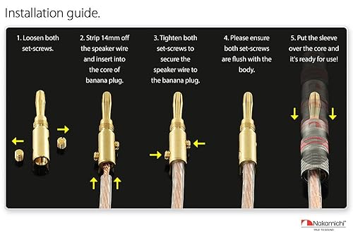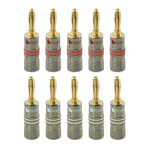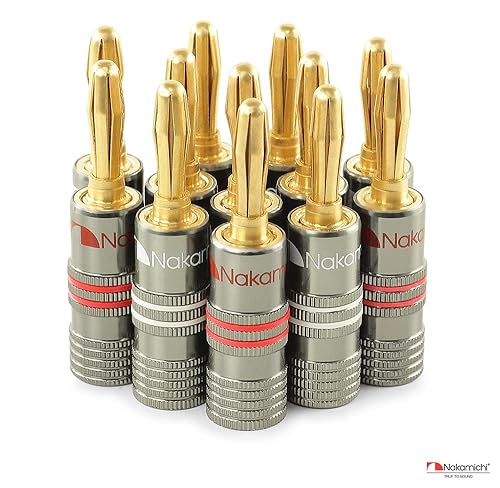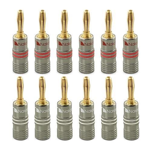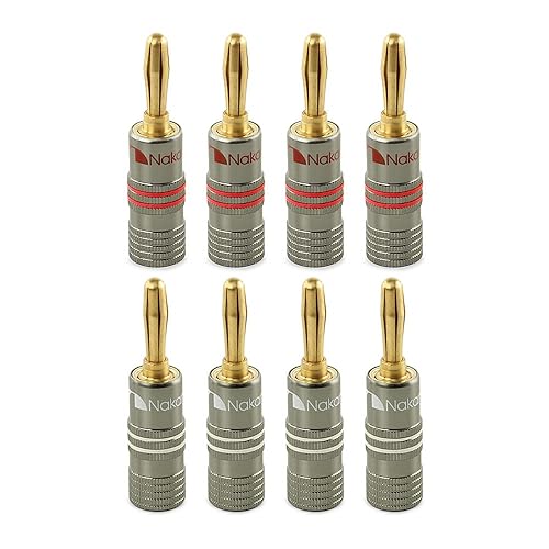 Nakamichi Serie Ultimate 24k Placcato Oro Rame Berillio-Rosso Spina A Banana 12-18 AWG 4mm Calibro per Altoparlante Amplificatore Hi-Fi Stereo Audio Connettore del Cavo 8 pezzi (4 coppie)