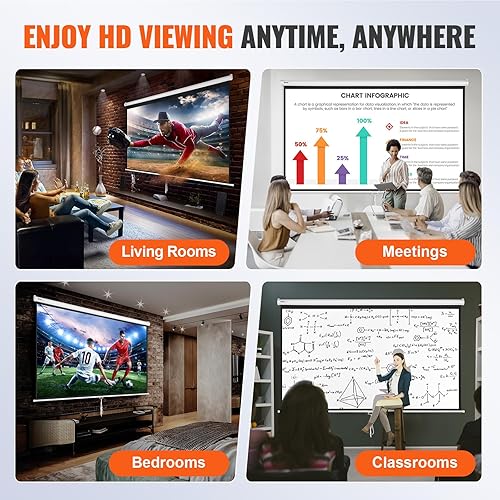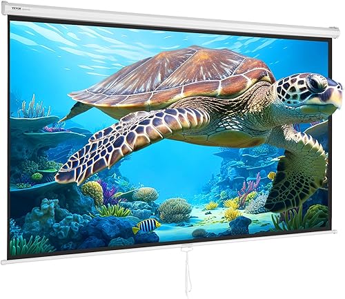 VEVOR Schermo di Proiezione Avvolgibile Manuale 100 Pollici 16:9 HD 4K Proiettore Antirughe Tela Ampio Montaggio a Parete Immagine Dettagliata per Home Theater Festa, Telo per Proiettore Avvolgibile
